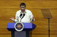A barangay police officer stands guard over one of the communities in pasay city placed on special lockdown due.